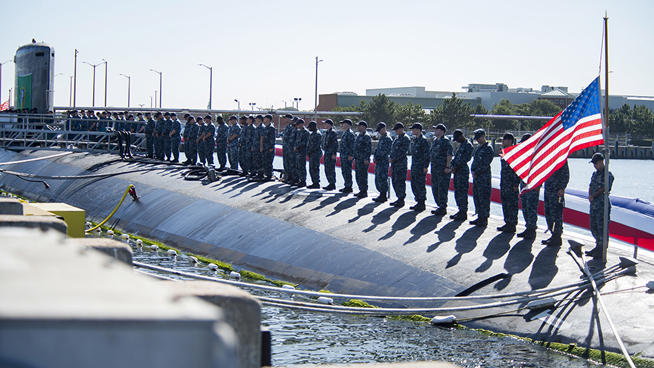 Sailors assigned to Pre-Commissioning Unit Washington practice for a commissioning ceremony scheduled at Naval Station Norfolk, Oct. 5, 2017. Credit: Navy Seaman Patrick T. Bauer
