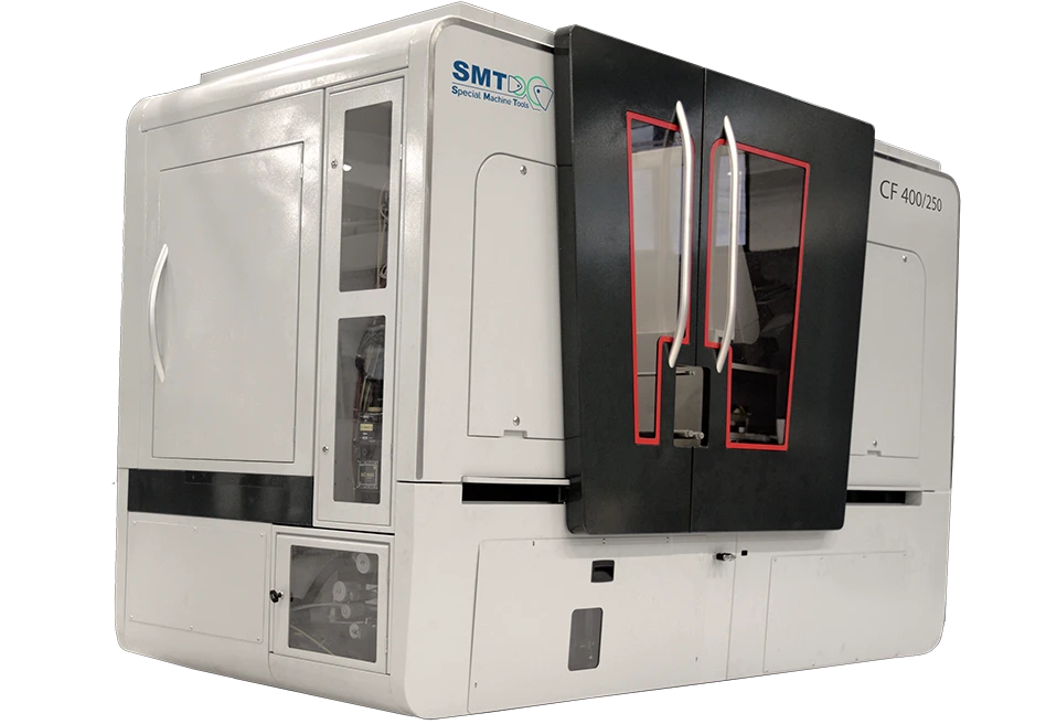 The new centerless grinding machine CF 400 /250 series with “workblade support fixed on the machine bed,” designed by SMT Special Machine Tools S.r.l. of Germignaga (VA) meets the new market requirements by offering advantages in terms of efficiency energy, high production and high quality, maximum reliability and precision, personalized software with very intuitive menus, machine ready for industry 4.0, low energy consumption, excellent price/performance ratio.