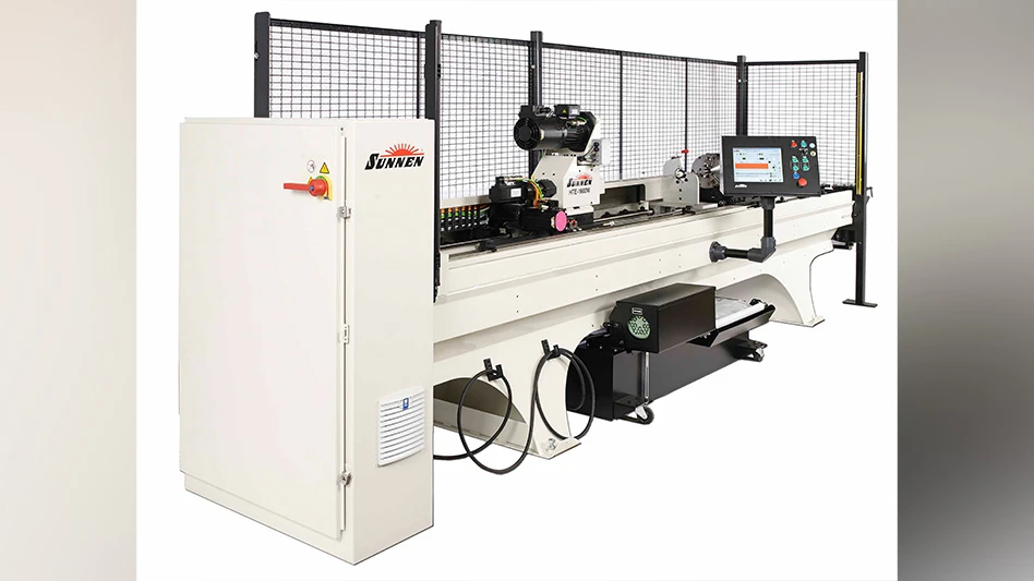 Sunnen’sHTE honing system, the company’s most cost-effective small-diameter hone, produces ideal bore geometry and surface finish, while eliminating problems from bad tool-to-part alignment and excessive feedrates that cause tool breaks and scrap parts. The new tube hone’s one-piece base maintains excellent tool/part alignment, and a special feature of the feed system provides maximum protection against tool overloading. Tool specific force limits and run settings are stored in the Windows-based touch-screen control. A unique feed system senses tight sections in the part and corrects them automatically.